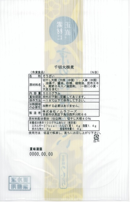 | 販売者 | 株式会社ノムラフーズ 京都府京都市伏見区 下鳥羽西芹川町66 |